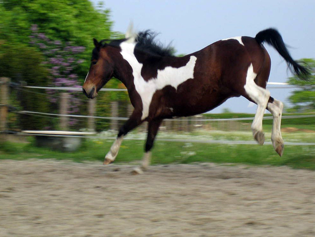 ihm bis heute viel Freude. Der letzte Hof, auf dem es uns eigentlich erst ganz gut gefiel, brachte dann so viel Verzweiflung, dass ich die ganze "Angelegenheit" Pferd am liebsten hingeschmissen hätte. Murphy war in seiner Verzweiflung wirklich gefährlich geworden und nicht wieder zu erkennen. Die "Rettung" kam im September 2008 und jetzt ist er (Mai 2009) im Verhalten wieder ganz der "Alte" und entwickelt sich ganz toll (auch gesundheitlich). Murphy